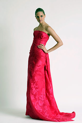 She showed gloriously printed dresses-both gowns and cocktail styles, as well as bright fuchsia pinks, canary yellows (my favorite being the above off-the-shoulder fitted gown with side pockets) and yes...